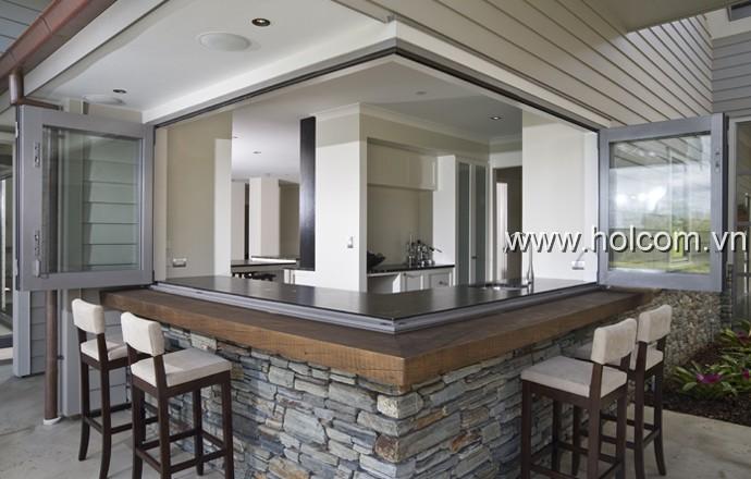 Cửa mở quay ra ngoài phù hợp với kiểu đóng mở cửa truyền thống của người Việt Nam nói riêng và Châu Á nói chung. Loại cửa này đặc biệt phù hợp với các dạng nhà vườn, nhà biệt thự, khu nghỉ dưỡng,...